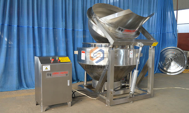 鹵味加工設備鍋體采用一次沖壓成型的不銹鋼封頭,保證鍋內平整光滑。采用電加熱形式,受熱面積大,熱效率高。鹵煮鍋可攪拌和不攪拌任意選用。結構緊湊、操作維修方便、工作效率高、耗能低、使用壽命長,完全符合食品衛(wèi)生要求。大型蒸煮鍋我們有可傾式和立式兩種任您選擇。